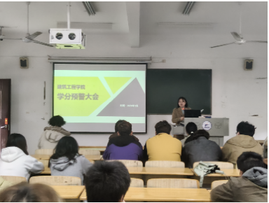 (本网讯 建筑工程学院)3月31日下午,建筑工程学院在濂溪校区教学楼411教室召开“学分预警”大会,该院教学副院长肖启艳主持,各班级达学分预警线学生参加。